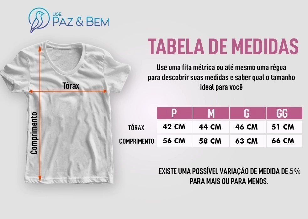 Vai muito bem com calça jeans e saia midi, dentre outras combinações, para que você possa participar da Santa Missa, encontro de jovens, Adoração, ir ao shopping, cinema e tantos outros lugares. Além de evangelizar dentro da igreja, nosso intuito é ir além, a Paz e Bem tem como maior objetivo levar a palavra de Deus através das camisetas para qualquer lugar que você for. Use e evangelize, isso que nos move, isso que nos faz criar cada estampa, casa camiseta, evangelizar é nosso combustível.